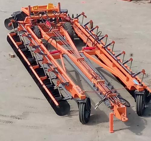 Складывание, раскладывание и установка углов атаки с помощью гидравлики. Облегчает труд механизатора и экономит время по сравнению с классическим лущильником.